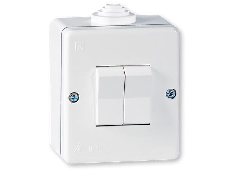 Sklopka serijska Ugradnja na zid pomocu vijaka prečnika do 4.5mm Nominalni struja/napon: 10A / 250V~ Dimenzije (d, v, š): 65mm x 76mm x 43mm Stepen zaštite: IP 55 Standard: IEC 60669-1, IEC 60529