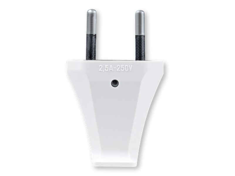 Utikač dvopolni bez kontakta za uzemljenje - euro Mogućnost ugradnje pljosnatog kabla 2x0.75mm² Nominalni struja/napon: 2.5A / 250V~ Standard: IEC 60884-1