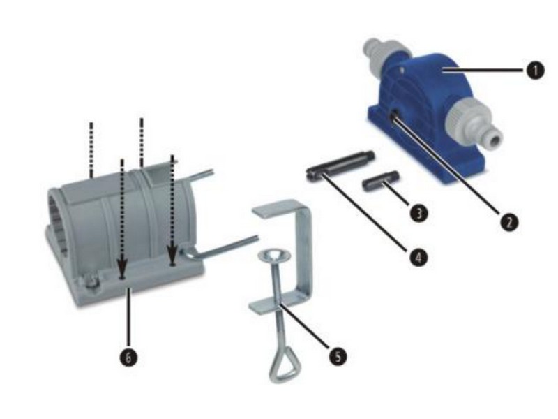 Plastična pumpa za bušilicu sa stezaljkom za pričvršćivanje na podnožje.