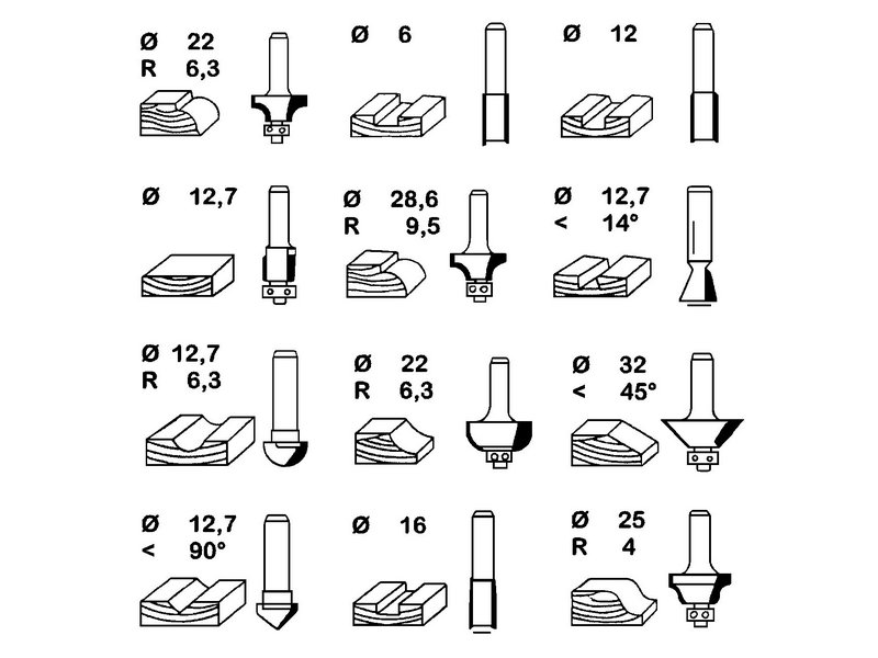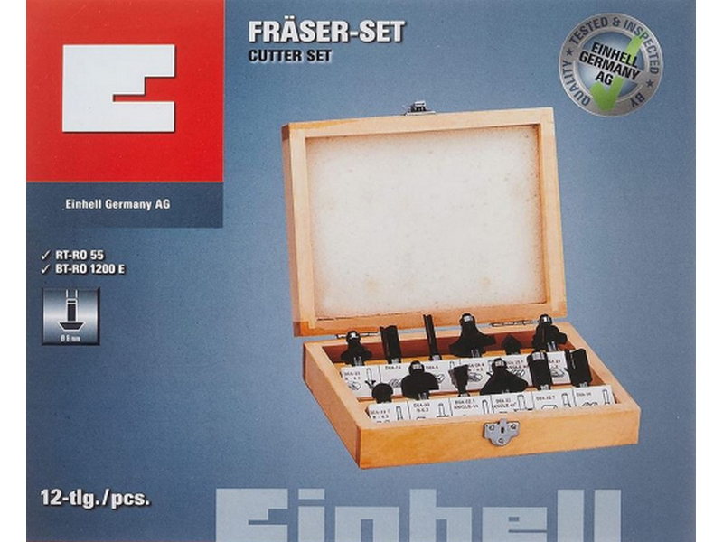 Set od 12 glodala prečnika 8mm u drvenoj kutiji