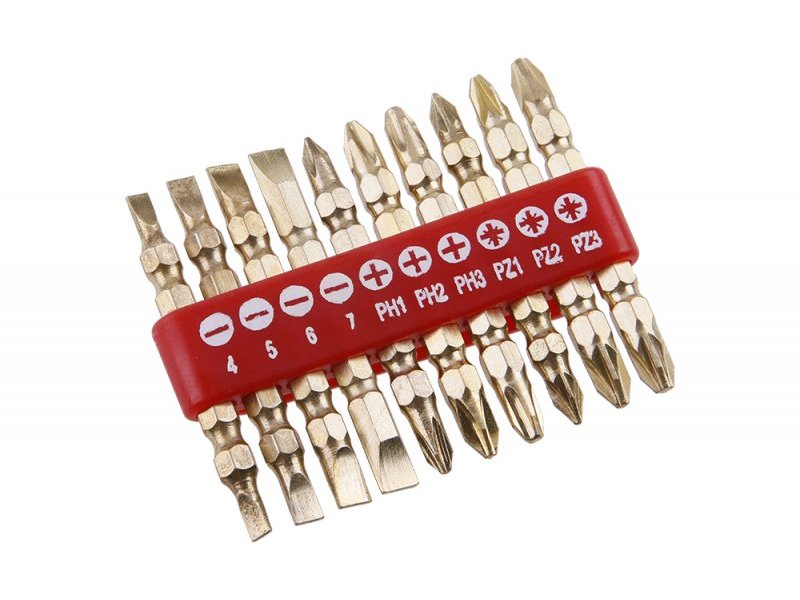 Set od 10 dvostranih bitova od hromiranog čelika u plastičnom organizatoru (-4,5,6,7 + PH1, PH2, PH3, k PZ1, PZ2, PZ3