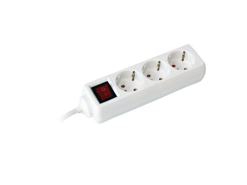 Prenosna utičnica bela 3 gnezda, 3m, H05VV-F 3x1.5mm2, 16A, 3500W, sa prekidačem, poseduje zaštitu za decu.