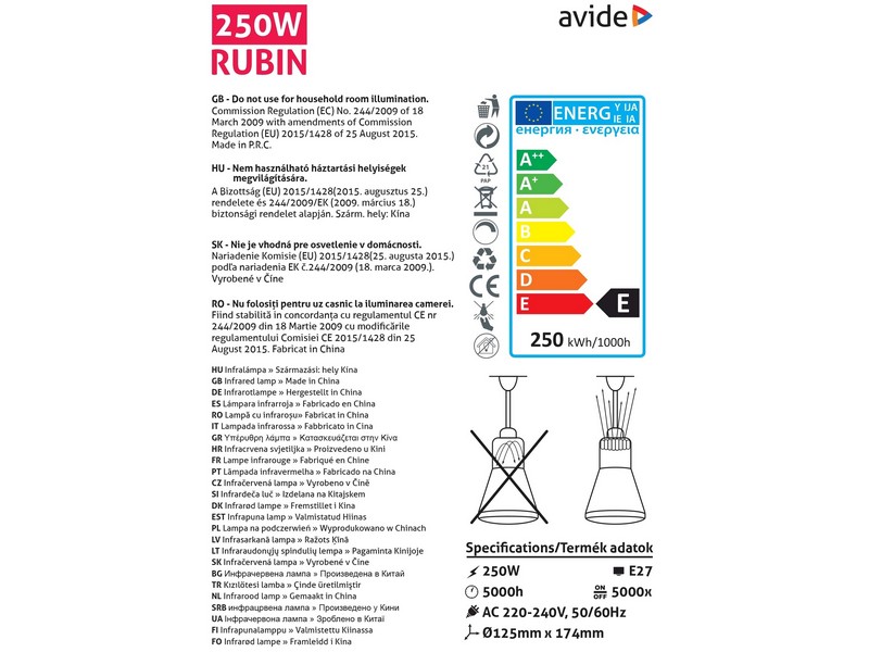 Sijalica 250W infra CRVENA 230V