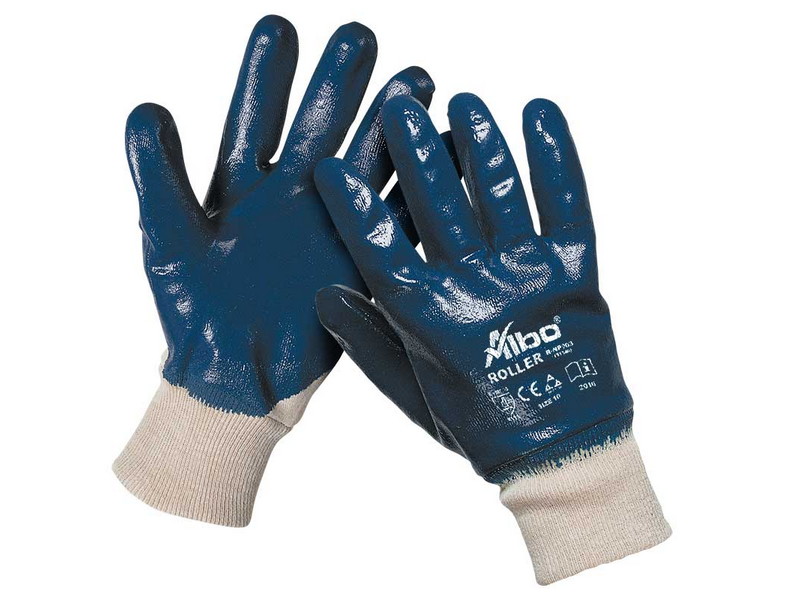Šivene zaštitne pamučne rukavice cele močene u nitril, plave boje. Imaju elastičnu manžetnu. Koriste se u industriji, građevinarstvu (pogodne su za rad sa građevinskim materijalima kao što su čelične table, metal, daske, cigle, teški kablovi), poljoprivredi, transportu, i u svim drugim industrijama u kojima je potrebno rukovati grubim, abrazivnim predmetima koji su mokri ili nauljeni. Veličina 10 EN 388:2003 4111 EN 388:2016 4111x