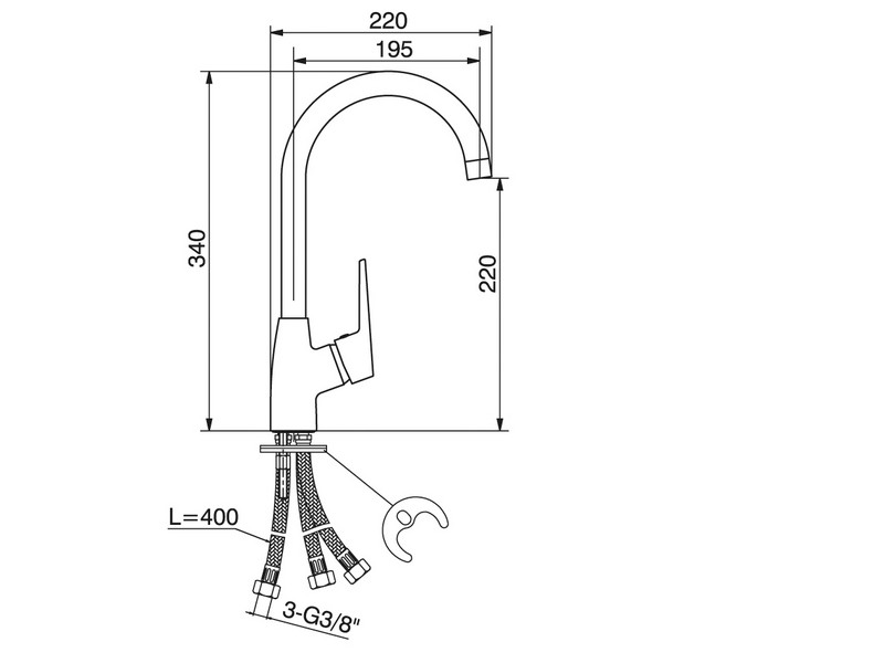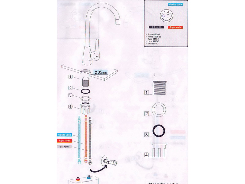 Jednoručna baterija za sudoper 3 sevi - labud