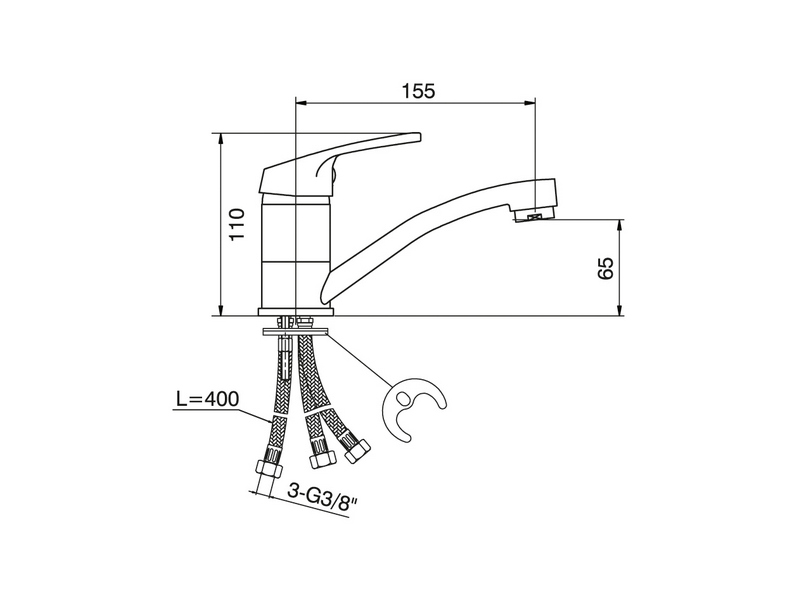 8114-3S VENETO baterija za sudoperu kraća lula