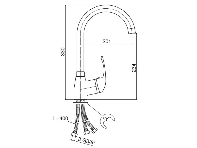 Naziv proizvoda: 8888 BATERIJA za sudoperu 3 cevi LABUD