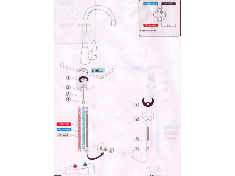Pre postavljanja baterije neophodno je isprati vodovodnu mrežu (cevi) od nečistoća ili ostataka nakon izvođenja građevisnkih i vodoinstalaterskih radova (pesak, malter itd.)