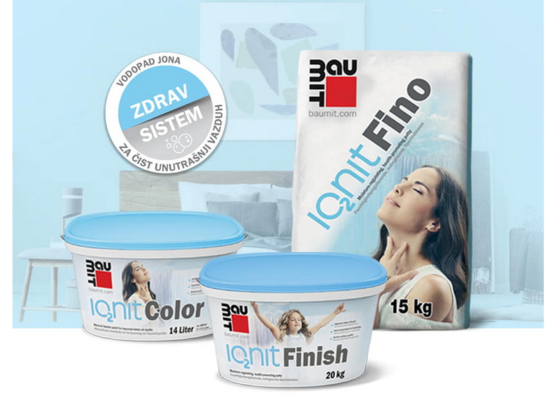 Mineralna glet masa za gletovanje površina i ispunu fuga kod gips ploča za unutrašnju upotrebu, poboljšava kvalitet vazduha u zatvorenom regulisanjem vlažnosti. Zajedno sa Baumit IonitColor kao završnim slojem, Baumit IonitFino daje značajan doprinos zdravoj klimi u zatvorenom, podržava proizvodnju zdravih vazdušnih jona i pospešuje zdravlje i vitalnost. Baumit IonitFino je osnova za završni premaz sa Baumit IonitColor za poboljšanje kvaliteta vazduha u zatvorenom.